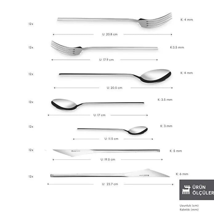 Karaca 316 Premium Look Platin 12 Kişilik 84 Parça Çatal Kaşık Bıçak Takımı