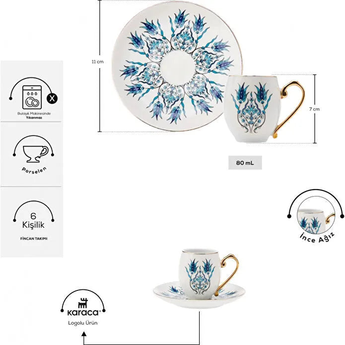 Karaca İznik 6 Kişilik Kahve Fincan Takımı 80 ml